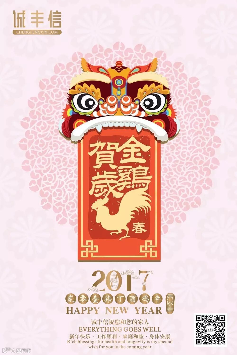 导读:农历新年即将到来,在这里诚丰信为大家送上最真诚的祝福,祝愿大家:鸡年大吉大利、百无禁忌、五福临门、富贵吉祥、