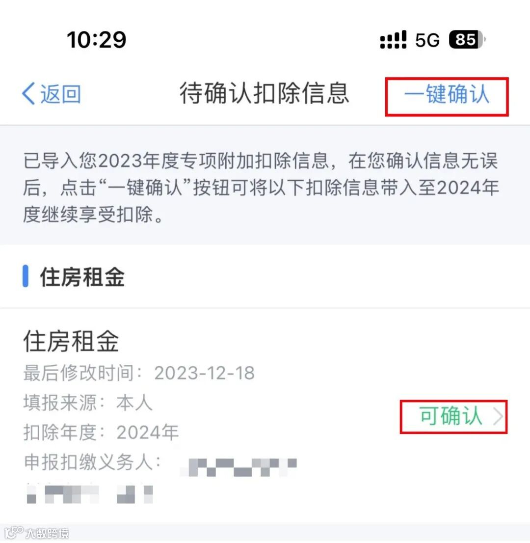 进入待确认扣除信息页面,请逐项点击【可确认】,核对信息是否准确,确认无误后点击【返回】,在页面右上角点击【一键确认】。