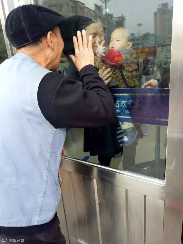进了车站这爷孙俩还是依依不舍
