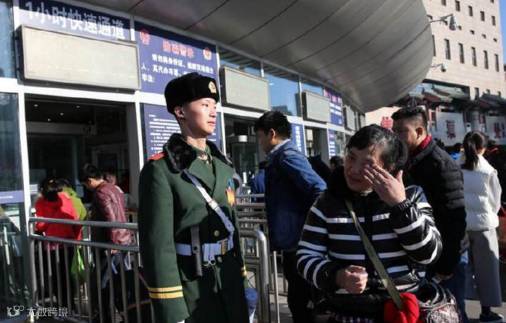 是正在维护车站秩序的儿子