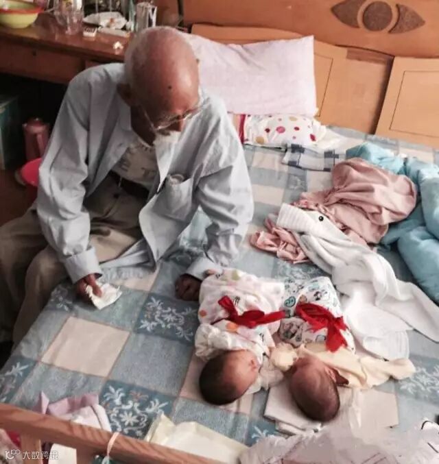 爷爷来看他的双胞胎重孙子