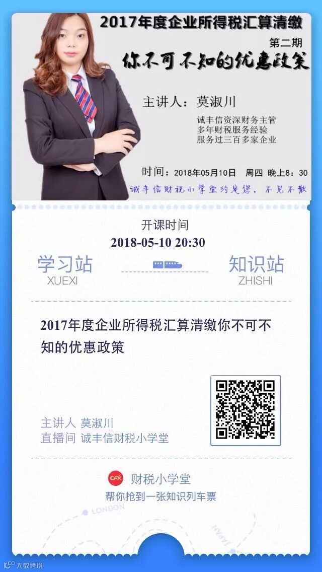 周四晚上8:30,诚丰信财税小学堂约定您,不见不散!
