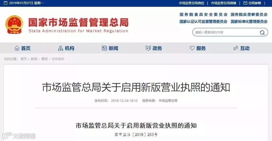 近日,市场监管总局发布关于启用新版营业执照的通知:自2019年3月1日起,颁发新版营业执照。