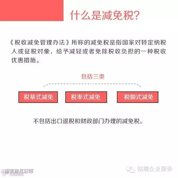 广州诚丰信企业服务有限公司税务总局日前发布修订后的《税收减免管理办法》,并自2015年8月1日起施行。什么是减免税?核准类减免税与备案类减免税有什么不同?具体流程是什么?9张图告诉你↓↓↓