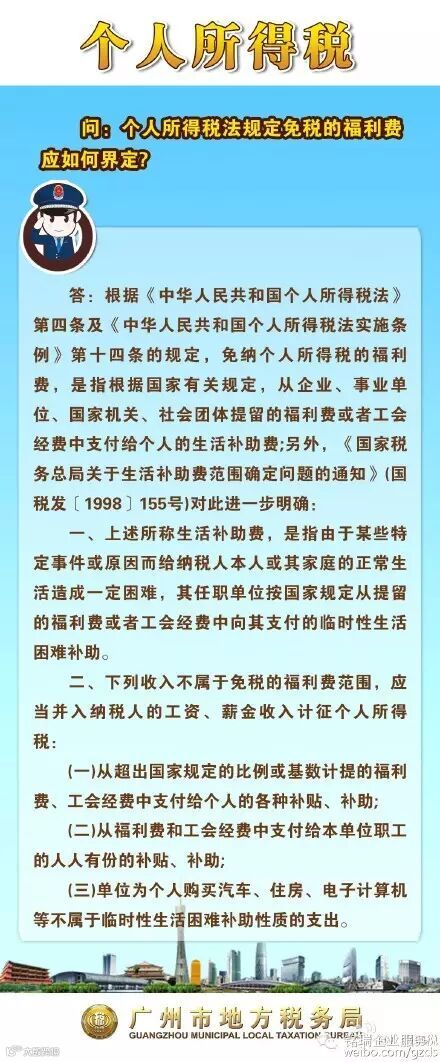 税法和实施条例规定的免纳个人所得税的福利费,是指根据国家有关规定,从企业、事业单位、国家机关、社会团体提留的福利费或者工会经费中支付给个人的生活补助费。国税发〔1998〕155号文也对此有明确规定。戳图↓↓↓