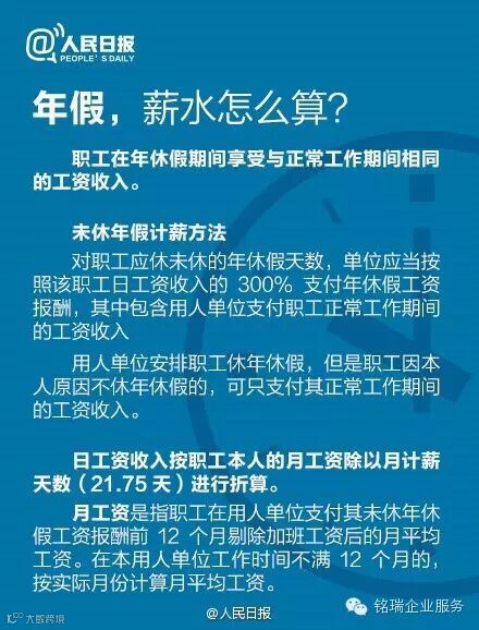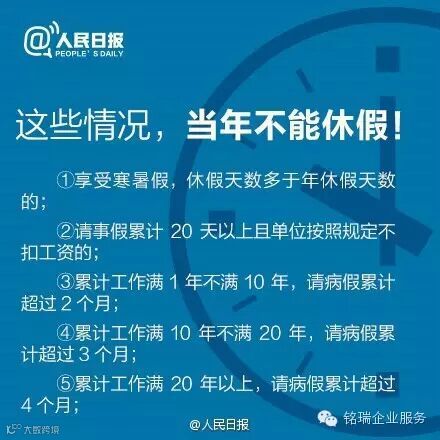 广州诚丰信企业服务有限公司带薪休假,是职工的权利。#2015年最后一月#,你的年假休了吗?不同工龄,年假怎么算?想休假,担心工资被扣?换了新工作,带薪休假怎么算?年假,能跨年吗?哪些情况不能休?......戳图↓关于带薪休假的那些事。关系到你的个人福利,速速收藏,转发学习!