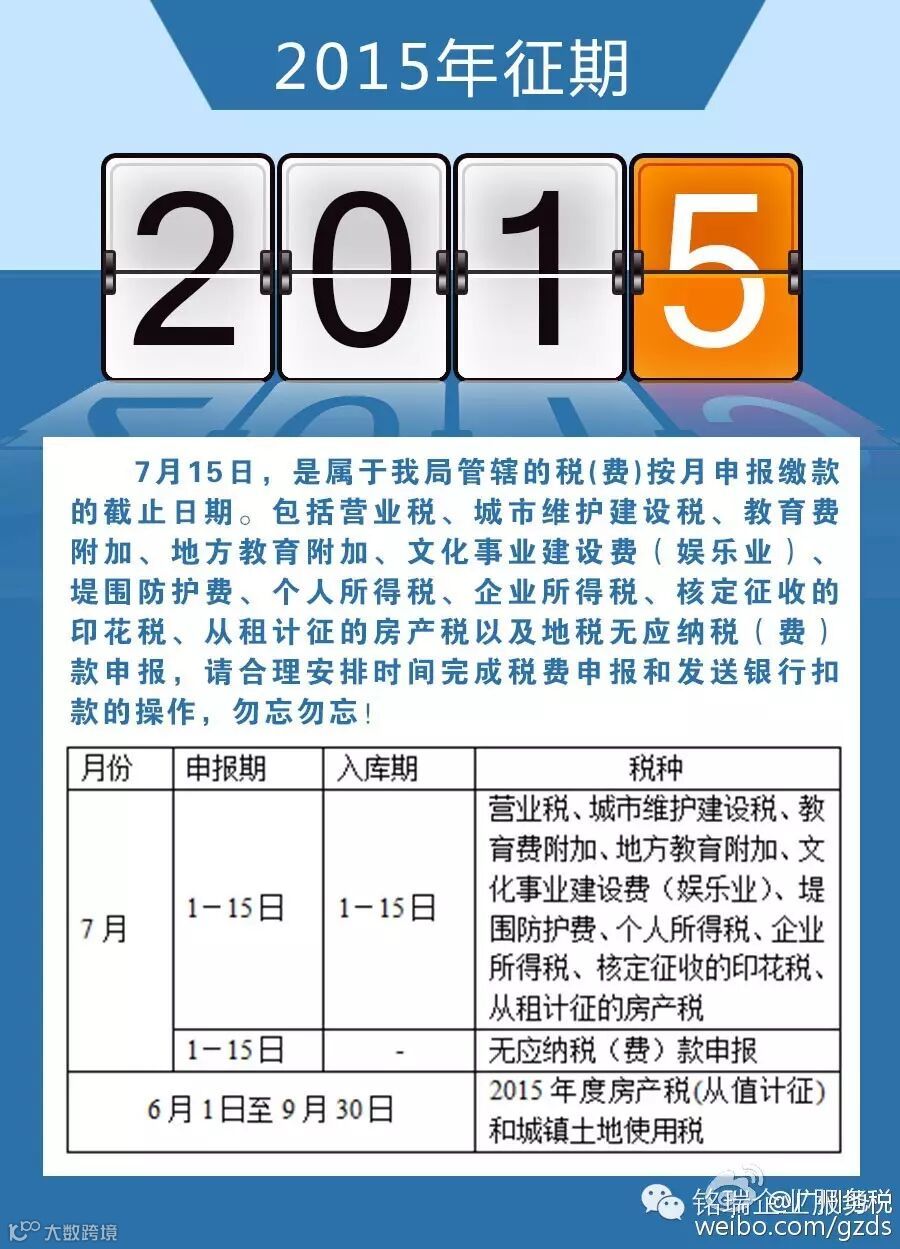 7月15日,是属于我局管辖的税(费)按月申报缴款的截止日期[钟][钟]把时间留给自己,合理安排时间完成税费申报和发送银行扣款的操作请合理安排时间完成税费申报和发送银行扣款的操作,勿忘勿忘!