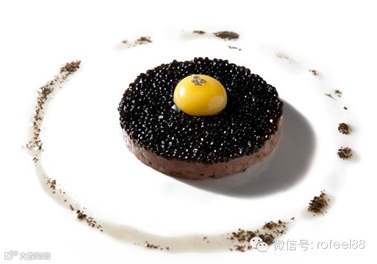 黄色的蛋芯,黑色的松露,最下层是诱人的鞑靼牛肉,对比鲜明的色彩,完美同心圆,强迫症患者的福音。