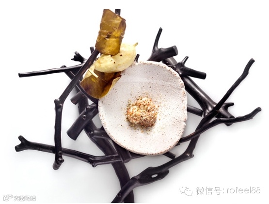 交错的黑色树枝,粗糙破损的瓷器餐具,呼应着盘中看似简单却工序复杂的料理,我们吃的不是食物,是情怀!