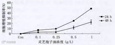 研究人员通过不同浓度的灵芝孢子油(0、0.1、0.25、0.5、1g/L)分别作用HepG2细胞24、48小时。
