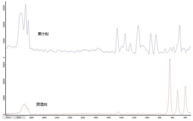 某饮品原料测试。手持拉曼光谱仪BRAVO能快速采集到消除荧光干扰后的拉曼光谱。