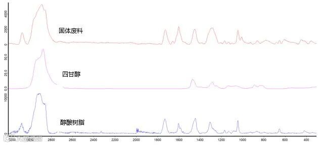 某工业生产固体废料成分分析。通过手持拉曼光谱仪BRAVO的混合物分析功能快速检测固体废料中的主要化学成分。
