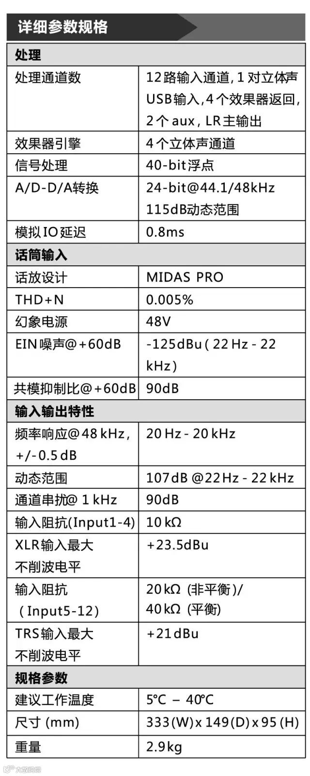 2个Aux输出和LR主输出均可使用动态处理和6段PEQ/31段GEQ