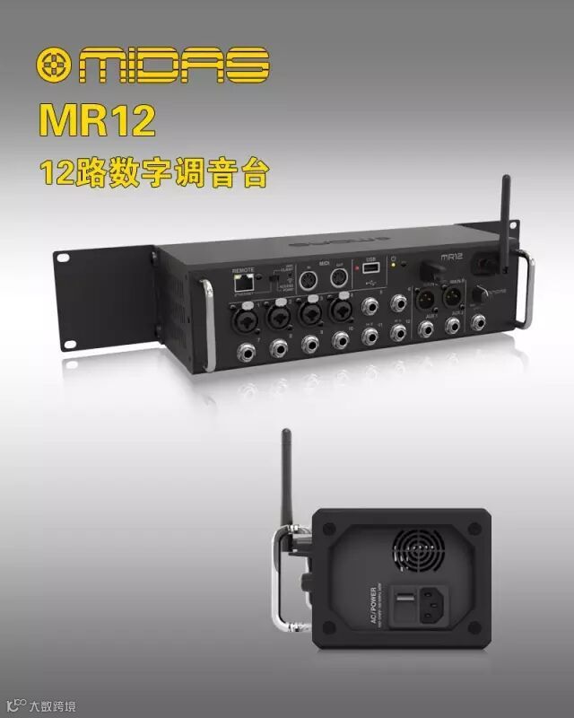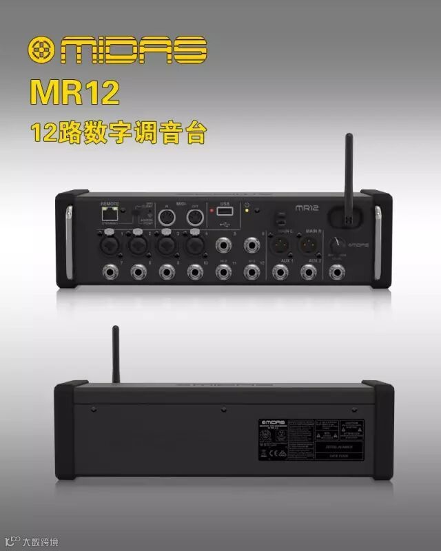 MR12集成WiFi模块于设备内部,使用者不再需要额外增加路由器,专为便携式所定制。这让使用者可以专注于混音,不再为繁琐的系统搭建而烦恼。另外,使用者可以随时随地的拿出其iPad等无线设备对系统进行监控。