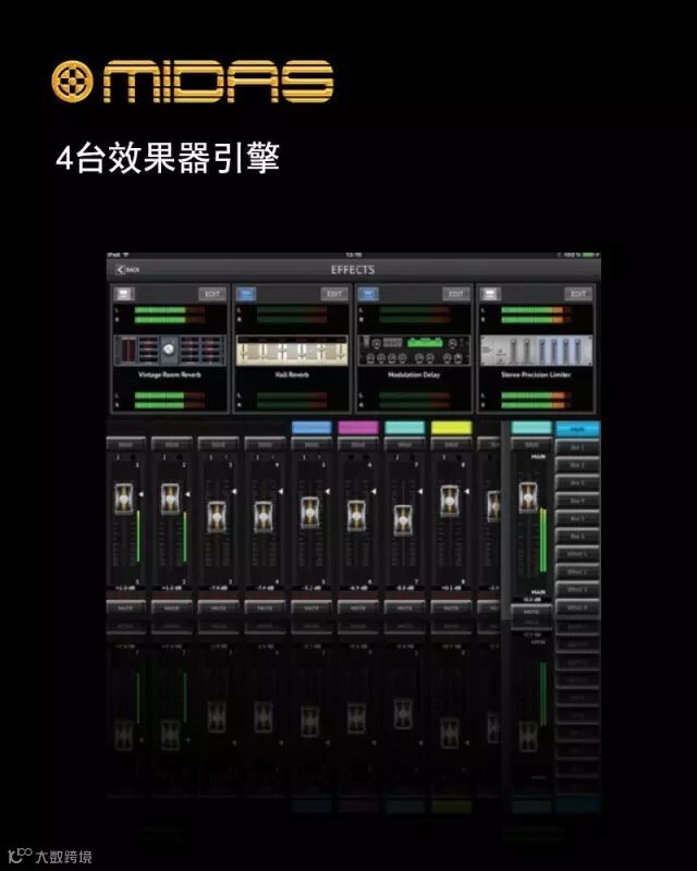 支持iPad/Android平板控制的12路输入数字混音台,适用于录音棚和现场演出