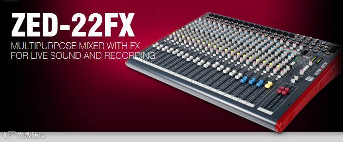 ZED 22FX是一款6单声+3双立体声道USB调音台,而ZED 22FX是一款16单声+3双立体声调音台,新品除保留了该系列其他型号的相同专业特性,还增加了室内设计特效的综合部分。Allen & Heath新型ZED FX调音台在单声通道上有反应灵敏的3段扫频式mid EQ,立体声通道上有2段EQ,100mm长冲程推子,4个辅助发送,一个USB发送和回传(适合PC或苹果机录音及回放),独特双立体声输入功能和先进的监听功能。连接器放置在外部的顶端,方便插入和配线,单独电路板用螺帽固定到顶部面板的结构非常适合Allen & Heath专业便携式调音台。此外,ZED FX还配有新型高性能DuoPre无衰减器的前置放大器。ZED的USB输出配置使得不同的信号从LR母带或辅助总线发向USB,USB以立体声回传信号。Cakewalk的SONAR LE音乐制作软件和调音台捆绑,使得用户能完成现场表演、现场录音、演播室录制或演播室混音等许多不同的任务。