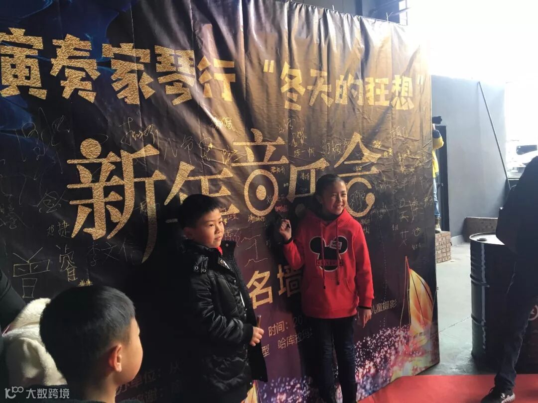 在签名墙上签名、在背景板处留影