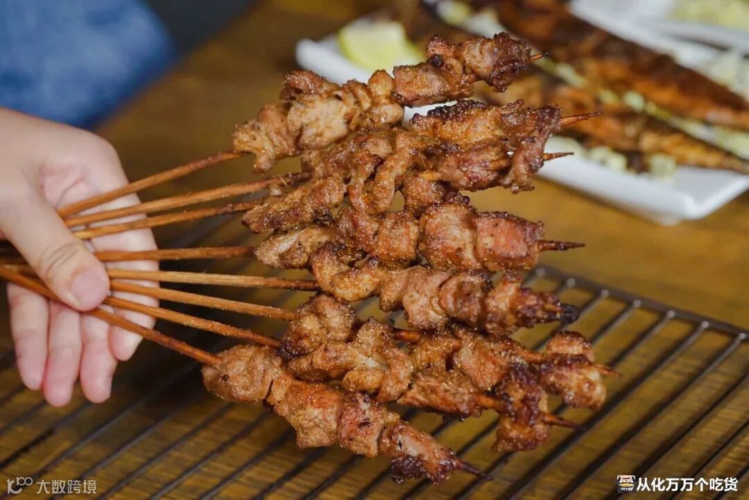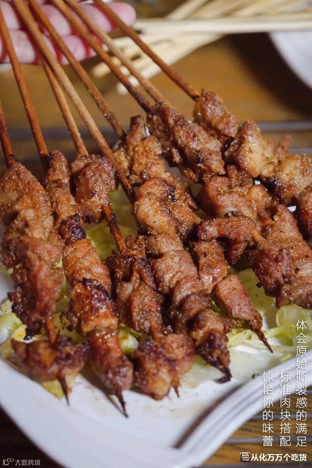 撒上孜然的羊肉串肥瘦相间,一口肉,一口香