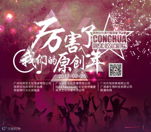 公司协助从化本土音乐,举办极具代表性的音乐盛宴:第一、第二届从化区流行摇滚音乐节;从化原创音乐年。