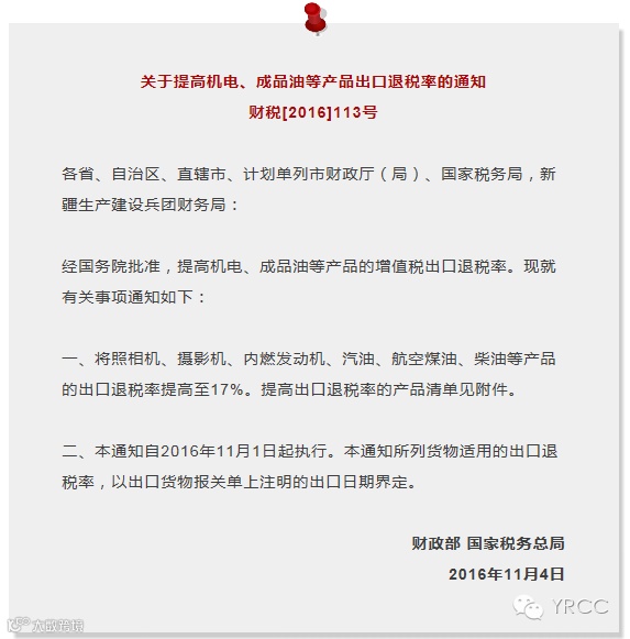 注意!11月1日起,这400多种产品出口退税率提至17%