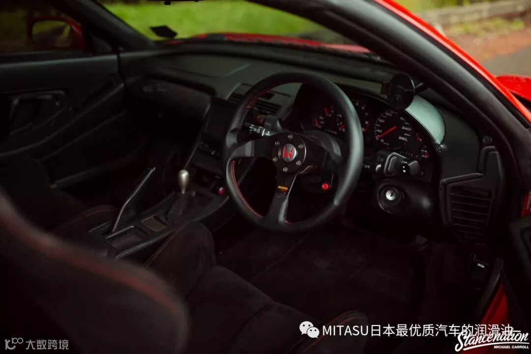 为了达到这种和谐极致的高度,车主并没有采用气动避震,而是通过一套KW V3绞牙达成。再配上来自Dali Racing、Lovefab以及STMPO等品牌的高性能悬挂套件,结合外观的细腻打理,最终使得这台近30岁高龄的NSX展现第二春。