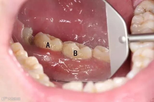 下图标注的A、B两颗牙齿表面看上去都没什么特别严重的问题。
