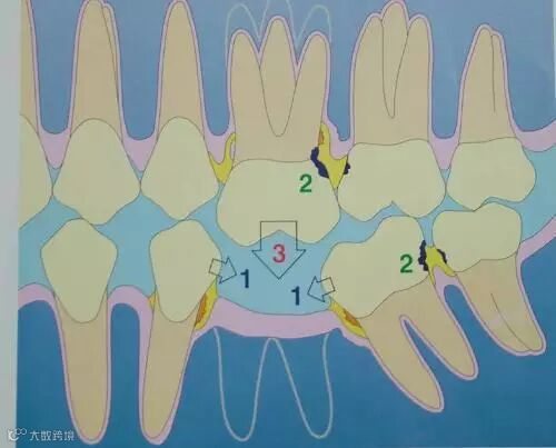 由于缺牙左右两边的牙齿无法获得它们原先常有的支撑压力,它们会在牙龈中变得倾斜不正,使牙齿逐渐松动,导致部分牙齿脱落。