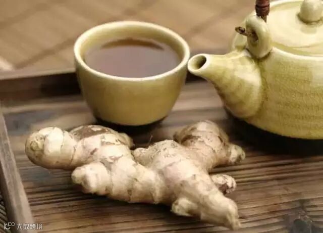 生姜 4片,茶叶15克,煎水调红糖适量,趁热饮下,每日2次。