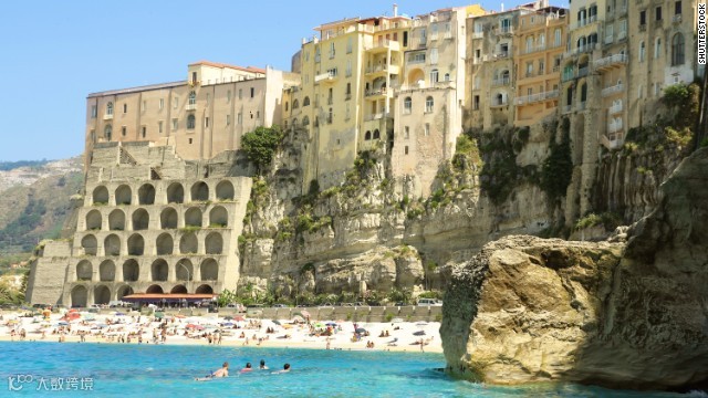 特罗佩阿海滩,意大利不是所有的沿海悬崖都是遥不可及或者饱经海风的洗礼。地处卡拉布里亚海岸边的悬崖之城特罗佩阿就坐落在意大利靴型国土的最南端,小城千百年来一直静静俯瞰着第勒尼安海的浩瀚碧波和迷人海滩。