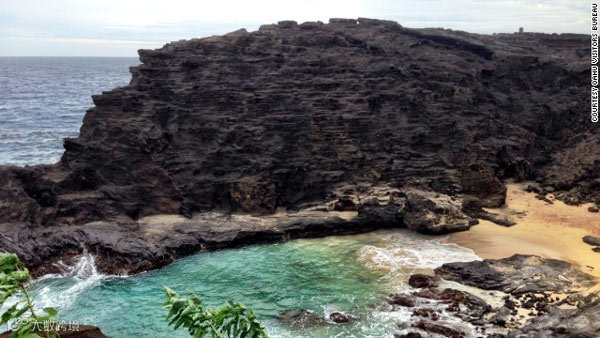 哈罗那海滩,瓦胡岛,夏威夷游客可途径一条崎岖的游览步道进入哈罗那海湾,这座位于瓦胡岛南部的海滩曾是1953年的电影《乱世忠魂》的取景地。