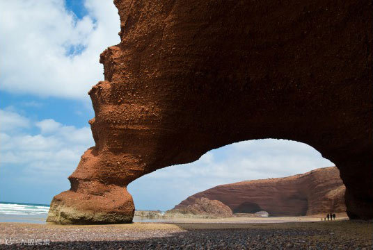 Legzira海滩,摩洛哥Legzira海滩位于摩洛哥南部的海岸线旁,大西洋翻涌的海浪在岸边深红的崖壁上雕饰出一座唯美的天然拱门。