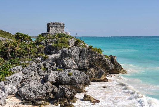 图伦海滩,墨西哥玛雅古城图伦的堡垒静静地伫立在加勒比海边的崖壁之上,而悬崖旁的图伦海滩则给人一种别样的游览体验。