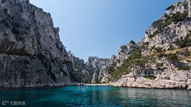 Calanque d`En Vau海滩,卡西斯,法国这座位于地中海旁的隐秘海滩位于滨海小镇卡西斯与法国第二大城市马赛之间。狭窄的海滩周围被各种陡峭的悬崖所包围,游人可徒步或乘船抵达。