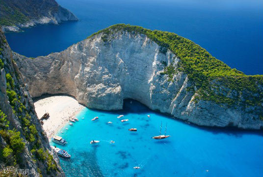 沉船湾,扎金索斯岛,希腊这座仅可乘船抵达的隐蔽海滩坐落在爱奥尼亚群岛的扎金索斯岛上,有着希腊最美海滩的美誉。