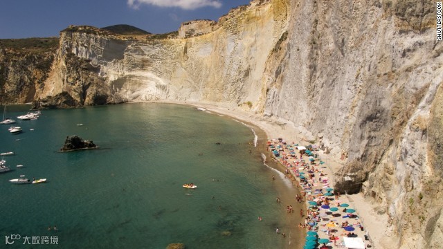 基艾亚迪月神湾,意大利位于意大利蓬扎岛上的基艾亚迪月神湾三面被笔直的峭壁所包围。