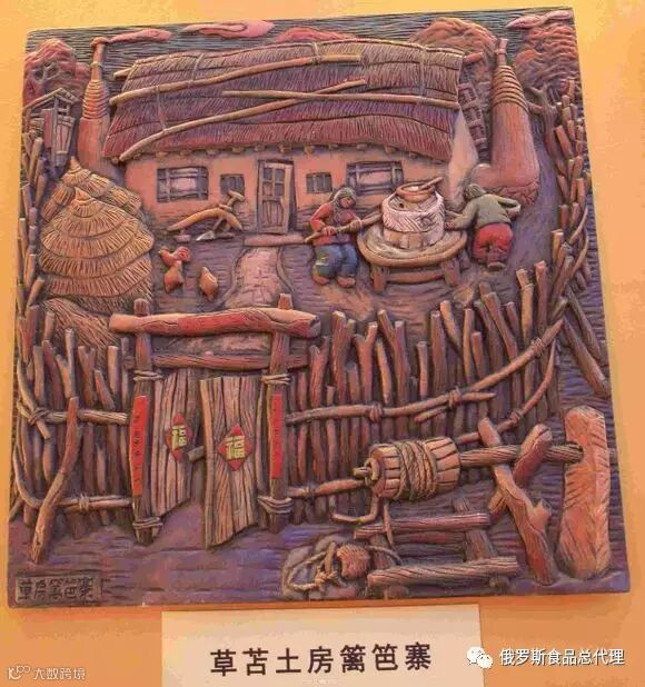 东北人的家,特别是农村,过去家家门前或小院里都有一个大酱缸,酱缸都是附近瓦窑烧制的,酱缸口用白布或者豆腐布盖着,边角系上红布条和螺丝帽,最后用“酱缸帽子”(苇子编制,形状和过去土改地主头上戴的尖顶纸糊帽子一样)盖上,