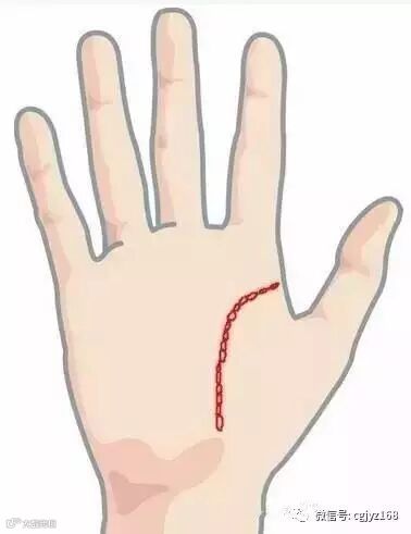 生命纹开头(靠掌边)有链形纹的,儿童时期体弱多病。生命纹尾端有如流苏,要防老人病。