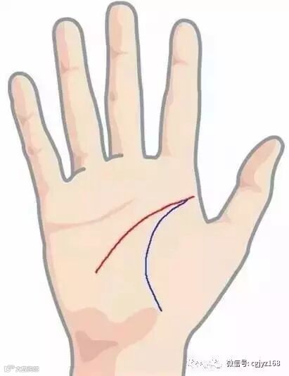 智慧线至又称脑纹是掌相中最重要的一纹,中国手相中此纹代表自己,又称人纹。起点与生命线同,向小指方向走,至无名指与小指指缝间停最好,太短不够聪明,太长则精明过度,亦不好。脑纹以深细为佳,表示思想能够集中,头脑聪明。