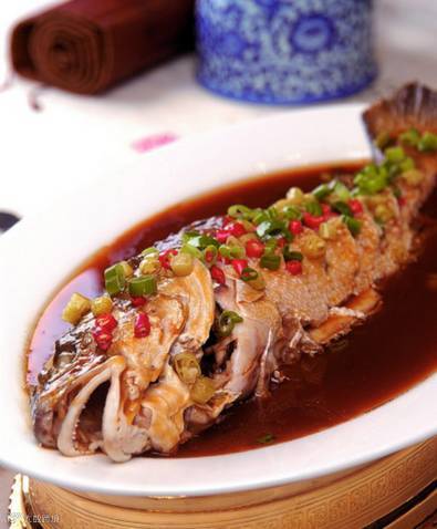鲈鱼一条、生姜数片、葱、酱油、黄酒、醋、老抽、精盐、味精。