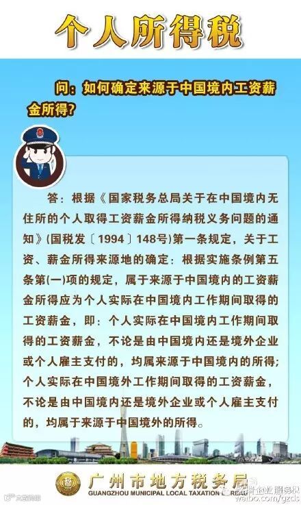 个人实际在境内工作期间取得的工资薪金,不论是由中国境内还是境外企业或个人雇主支付的,均属来源于境内的所得;个人实际在境外工作期间取得的工资薪金,不论是由中国境内还是境外企业或个人雇主支付的,均属于来源于境外的所得。