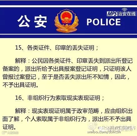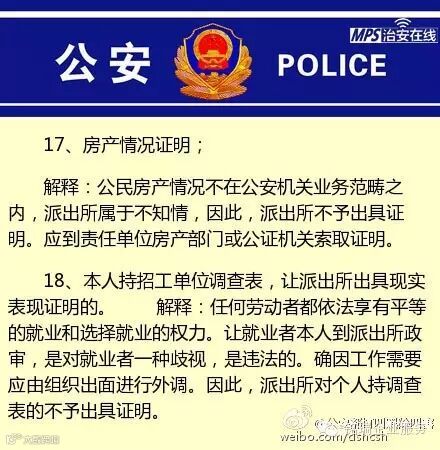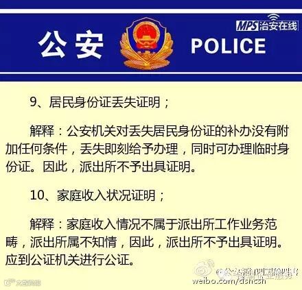 居民身份证丢了,要办理临时身份证才能不耽误乘机、取款、考试;办理银行贷款,要提供房产情况证明、偿还能力证明……那么问题来了:这些重要的证明材料,哪些是公安机关办不了的?又该找哪个部门办理呢?答案在这里↓↓ 收藏转发!