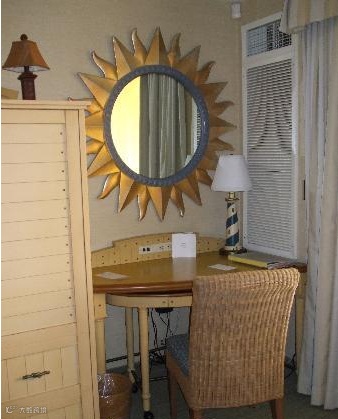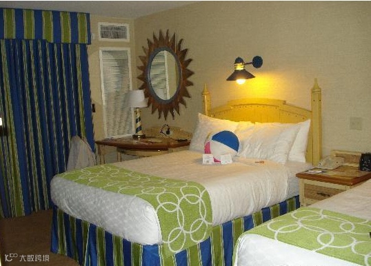 特色住宿2 1王床或皇后床,舒适的床上用品,阳光明媚的艺术品、沙滩球枕头甚至米奇头像。 所有的房间都不吸烟,包括冰箱,纯平电视,咖啡壶,安全、免费平日报纸和免费有线和无线网络。 房间包含一个双长椅在客厅(房间里禁用访问除外)。