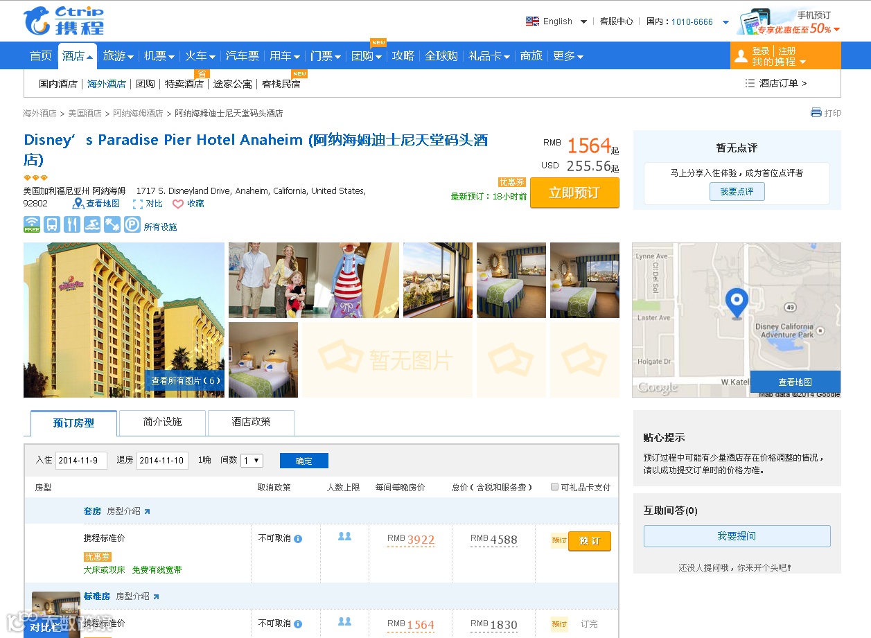5天4夜在迪斯尼乐园码头酒店,1717年迪斯尼乐园,阿纳海姆,加利福尼亚州。92802年,美国。 电话:+ 1 714-999-0990。 价格是每人每房间和基于2成人。