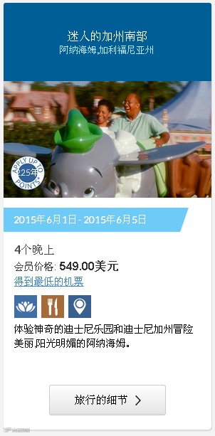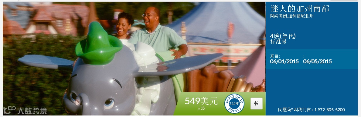 2015年陪孩子到美国迪斯尼过儿童节5天4夜wv梦幻之旅549美金(会员抵扣225积分)