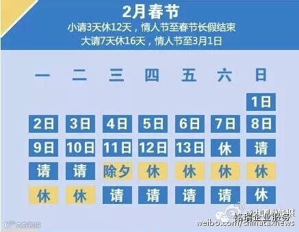 导读:传说中,2015年的假期,拼一拼可以休64天,就是这么任性!赶紧盘算去哪儿潇洒吧[真V5]了解更多财税工商信