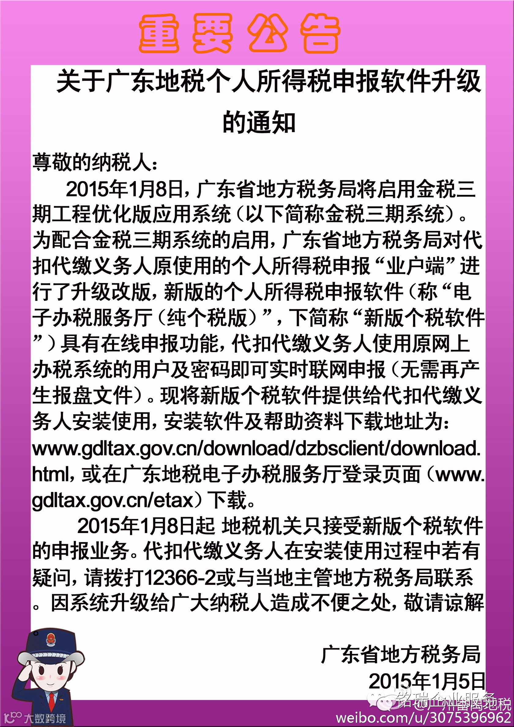 导读:【关于广东地税个人所得税申报软件升级的通知】了解更多财税工商信息,添加铭瑞公众号:mingrui_es 或登