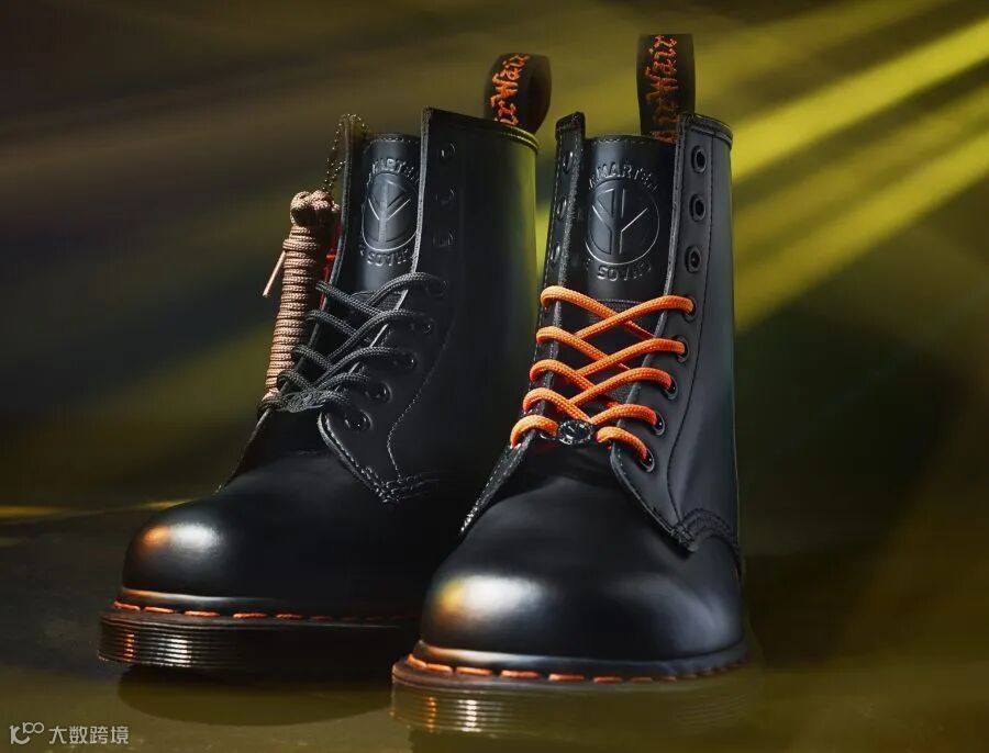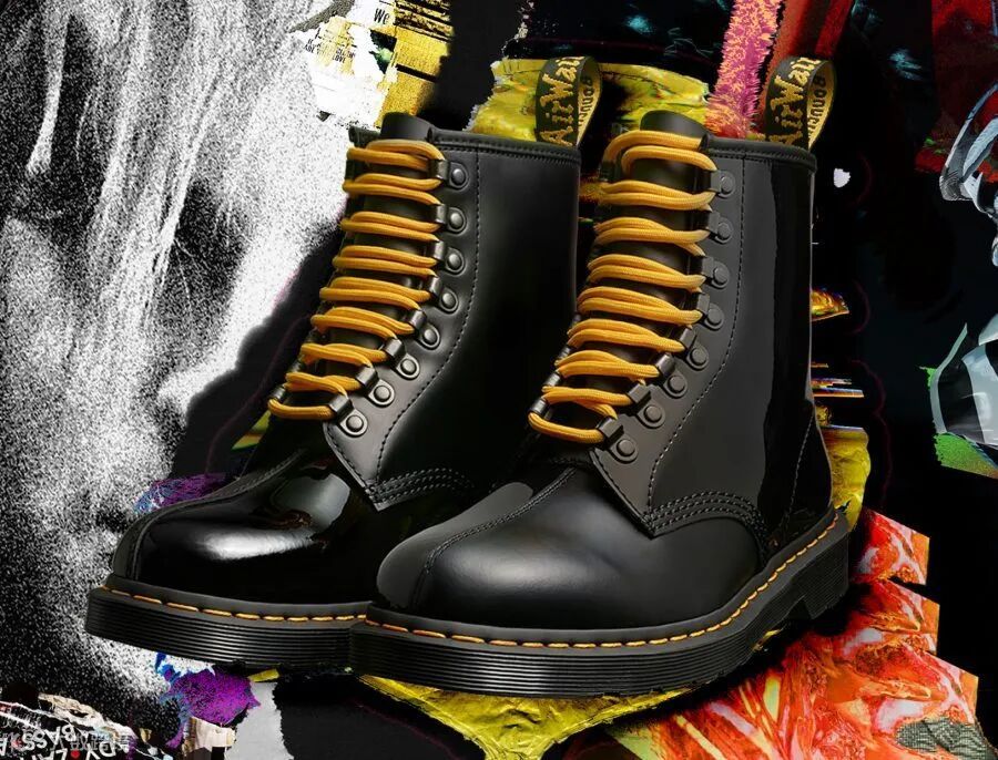 Dr. Martens 和 Pleasures 代表的两种音乐风,朋克摇滚和新浪潮。经典的原皮革灵感来自朋克制服,光泽的漆皮代表了新的潮流。