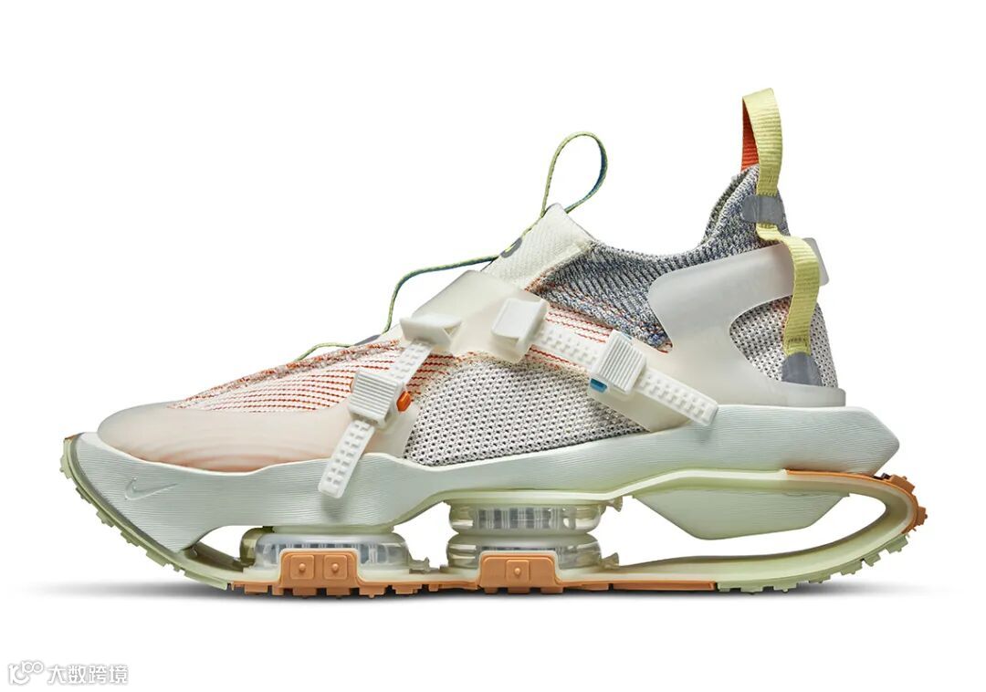 最重磅的新品当属这双 Zoom Road Warrior,开放式悬浮鞋跟,中空的鞋底里加入了4个Zoom 气垫,鞋款足底稳定片下采用了双支柱设计,能带来更好的支撑和回弹。