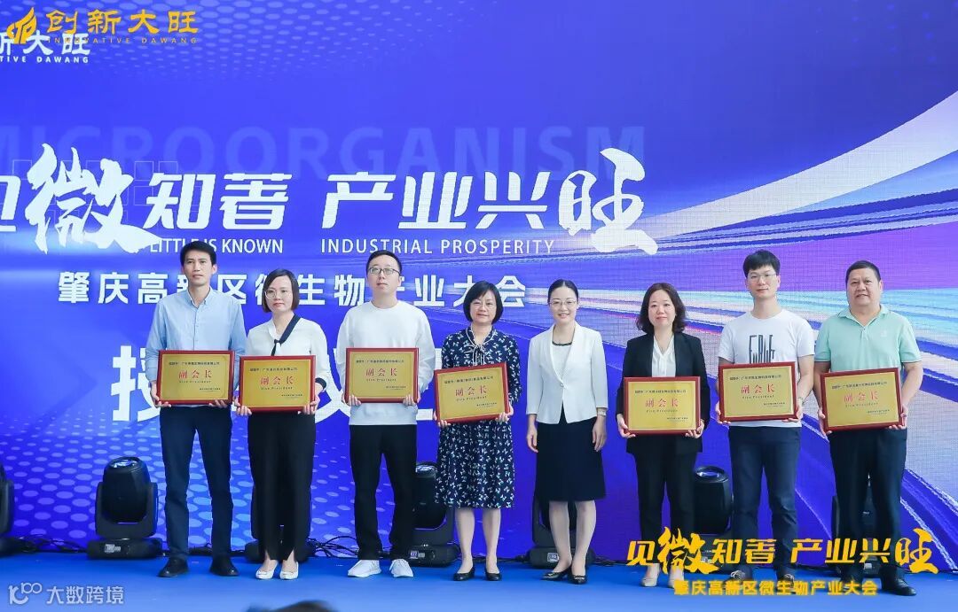 此次大会,粤微携多项微生物科研转化特色成果参会,受到一众嘉宾驻足围观。会上,粤微获授“肇庆市微生物产业联盟”副会长单位。集团谢意珍总经理、张智副总经理出席大会。