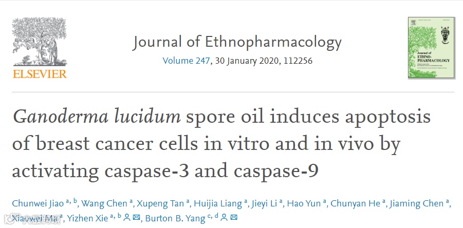 该项研究被发表于国际著名传统药理学期刊《Journal of Ethnopharmacology》,被广为借鉴利用,为乳腺癌女性患者燃起新的希望,为灵芝孢子油抗肿瘤的机制探索奠定了基础。